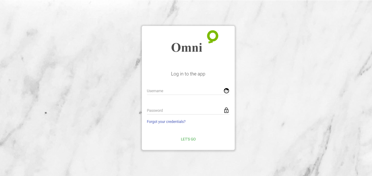 Para utilizar los servicios que ofrece la aplicaci贸n Omni-Q es necesario que el usuario inicie sesi贸n. Cuando el usuario se dirija a la p谩gina principal deber谩 llenar los campos con las credenciales que les fueron enviada por los proveedores de Omni-Q. Estas ser谩n Username y Password.