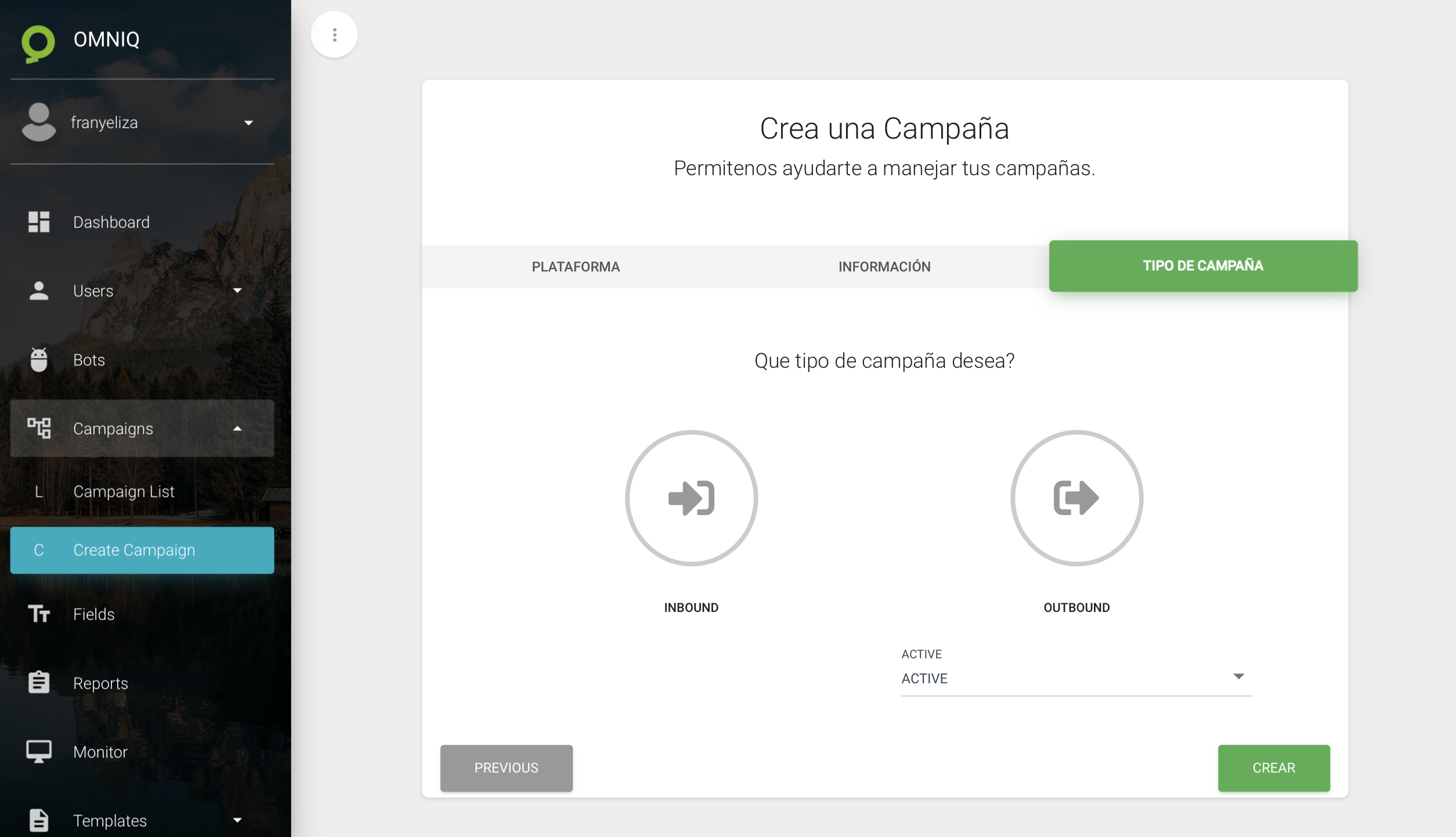 Debe activar su campaña para que pueda utilizarla. Y puede seleccionar cualquiera de las dos opciones sobre si sera INBOUND o OUTBOUND, esto no le afectará